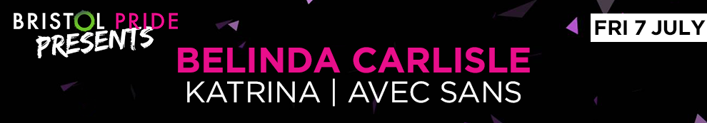 Bristol Pride Present American pop icon Belinda Carlisle along with Eurovision winner and Walking on Sunshine singer Katrina, of Katrina & The Waves, and electro pop duo Avec Sans.